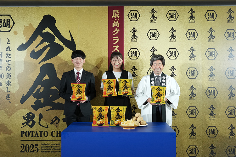 【発売10周年を記念し、2025年版ポテトチップスのアンベール式を開催】 “ちょっと高級でプチ贅沢”なポテトチップス 「今金男しゃくポテトチップス」 先行お披露目イベントを実施しました! 2025.09.11 株式会社湖池屋(社長:佐藤章)は、希少で格別な味わいを持つじゃがいも「今金男しゃく」を使用した年に一度しか発売されない「今金男しゃくポテトチップス」を、2025年9月11日(木)12:00より予約販売を開始しました。また、「今金男しゃくポテトチップス」が今年で発売10周年を迎えることを記念して、日頃から応援してくださっているファンのみなさまをご招待した特別なファンミーティング&先行お披露目イベントを2025年9月10日(水)に赤坂ガーデンシティにて開催しました。 2025年版「今金男しゃくポテトチップス」を先行してお披露目! 今回のイベントでは、発売を待ち望んでいたファンのみなさまと一緒に、今年収穫されたばかりの「今金男しゃく」を使用した、数量限定生産の「今金男しゃくポテトチップス」のアンベール式を実施し、2025年版商品の公開や「今金男しゃくポテトチップス」の味わいポイントやブランドの誕生秘話、味づくりのこだわりや10年間の歩みについて湖池屋の担当者より説明させていただきました。また、貴重な今金男しゃくそのもののご試食や、ポテトチップスとの食べ比べを通じて、素材本来の風味と製品に仕上げた際の味わいの違いをお楽しみいただき、イベントにご参加いただいたファンの方からは「こんなに美味しいじゃがいもを食べたのは初めて」「軽くて、いくらでも食べられる」といった感想をいただきました。「今金男しゃくポテトチップス」は本日より予約販売開始です。みなさまもぜひお試しください! 【実施概要】 ■日時:2025年9月10日(水)11:00〜13:00 ■会場:ベクトルスタジオ(東京都港区赤坂4-15-1 赤坂ガーデンシティ16F) ■内容:・湖池屋担当者より「今金男しゃくポテトチップス」商品開発背景の紹介 ・今金町農業協同組合担当者より「今金男しゃく」に関しての説明 ・2025年版「今金男しゃくポテトチップス」アンベール式(お披露目) ・「今金男しゃくポテトチップス」&「今金男しゃく」を使用したレシピの試食 ●「今金男しゃくポテトチップス」について 「今金男しゃくポテトチップス」は、メインを担うじゃがいもに、ホクホクで甘みが濃厚な“幻のじゃがいも”「今金男しゃく」を100%使用した、年に一度だけ食べられる湖池屋の秋限定ポテトチップスです。今金男しゃく本来の素材のおいしさを最大限に生かすために、湖池屋が60年にわたり培ってきた技術とノウハウを注ぎ込んだ、こだわりの逸品です。噛めば噛むほどおいしさが口の中に広がる、素材の甘みと旨みが引き立つ最高クラスのポテトチップスです。 ●「今金男しゃく」について 北海道今金町で栽培される「今金男しゃく」は、北海道産の男爵芋の中でもひと際高く評価されているじゃがいもで、“大地の職人”と呼ばれる生産者が作り出しています。栽培に適した土壌や昼夜の寒暖差といった自然条件が揃った限られた地域でしか育たず、全国で生産されるじゃがいもの中で、1%にも満たない大変希少な品種です。極上の美味しさと唯一無二の存在感から、“年に一度しか出会えない奇跡のじゃがいも”として、多くのファンに愛されています。 【「今金男しゃくポテトチップス」商品概要】 ■商品名/内容量 「今金男しゃくポテトチップス 甘み引き立つ しお味」/1箱・6袋入(70g/袋) 「今金男しゃくポテトチップス 旨み感じる のり塩」/1箱・6袋入(70g/袋) 「今金男しゃくポテトチップス 味くらべセット」/しお味・のり塩 各1箱 ■価格 1箱/1,581円(税込) 味くらべセット/2,980円(税込) ※送料別 ■発売日/販売先 2025年9月11日(木)12:00〜 予約受付開始/湖池屋オンラインショップ ■湖池屋オンラインショップ (URL) https://www.koikeya-online.jp/shop/lp/imakane.aspx 【一般のお客様からのお問い合わせ先】 株式会社湖池屋 お客様センター Tel.0120-941-751 受付:月〜金 9:00〜17:00 (祝日除く) 【このリリースに関するお問い合わせ先】 株式会社湖池屋 広報部:伊藤/小幡 Tel. 080-3582-2708 Fax. 03-6872-2613 〒150-0001 東京都渋谷区神宮前6-17-11 JPR原宿ビル8F E-mail. pr@koike-ya.com
