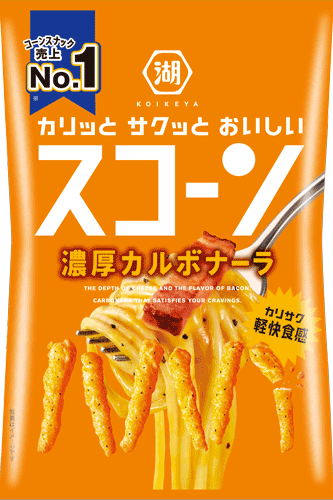 【おつまみにも夜食にも!】 コク深いチーズとベーコンの濃厚な旨み 「スコーン 濃厚カルボナーラ」 全国コンビニエンスストアにて期間限定発売 2025.11.17 株式会社湖池屋(社長:佐藤章)は、コーンスナック国内売上No.1ブランド「スコーン」において、チーズのコクとベーコンの濃厚な旨みがくせになる「スコーン 濃厚カルボナーラ」を2025年11月17日(月)より全国のコンビニエンスストア限定で発売します。 濃厚好きな“あなたナーラ”やみつき間違いなし! 「スコーン」は1987年の発売以来、35年以上にわたりお客様に愛され続けている、湖池屋を代表するロングセラーブランドです。2022年3月に、現代人の味覚に合わせて、さらに“カリッとサクッとおいしい”軽快な食感と濃密な味わいへと進化し、現在はコーンスナック国内売上No.1※の大人気スナックとして多くのお客様よりご好評をいただいています。 ※インテージSRI+ コーンスナック市場 2024年3月〜2025年2月 累計販売金額 今回の新商品では、老若男女問わず幅広い世代から人気の「カルボナーラ」に着目しました。スコーン独自の製法により、濃厚なクリームソースやチーズのコク、ベーコンの旨みが広がるやみつきな味わいに仕上げました。寒さが増してくるこの時期にぴったりの逸品です。 パッケージは、オレンジ色を基調とし、「スコーン」ブランドが持つ明るいイメージと、カルボナーラの濃厚さを表現しました。カルボナーラの写真を大きく配置し、ベーコンの香ばしさと濃厚なソースが食欲をそそるデザインです。 おつまみにも夜食にもぴったりな、この時期だけの特別なスコーンをぜひお楽しみください。 【商品概要】 ■商品名/内容量 「スコーン 濃厚カルボナーラ」/85g ■価格 オープン価格 ■発売日/販売先 2025年11月17日(月)/全国コンビニエンスストア限定 ■「スコーン」ブランドサイト (URL) https://sucorn.koikeya.co.jp/ 【一般のお客様からのお問い合わせ先】 株式会社湖池屋 お客様センター Tel.0120-941-751 受付:月〜金 9:00〜17:00 (祝日除く) 【このリリースに関するお問い合わせ先】 株式会社湖池屋 広報部:伊藤/小幡 Tel. 080-3582-2708 Fax. 03-6872-2613 〒150-0001 東京都渋谷区神宮前6-17-11 JPR原宿ビル8F E-mail. pr@koike-ya.com