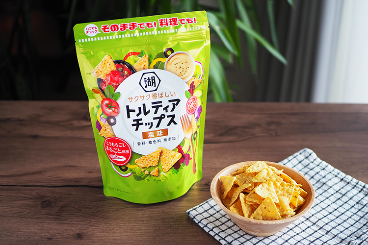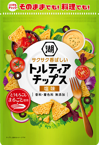 色んなシーンで楽しめる、とうもろこしまるごと使用 トルティアチップス